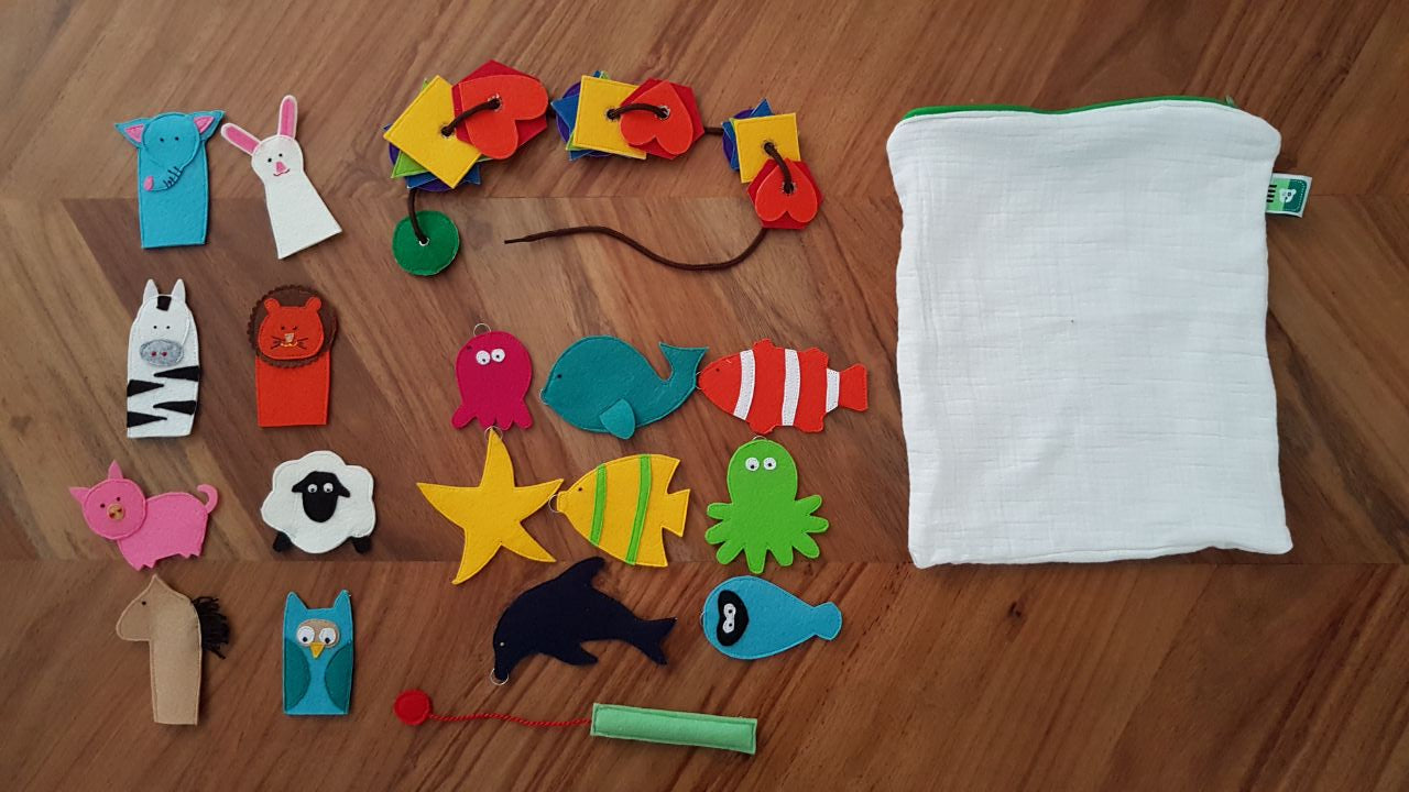 This Busy Bag offers a range of opportunities for learning and development, including building vocabulary, learning about shapes, colors, and sizes, stacking, story building to improve imagination, lacing and catching fish activities to improve hand-eye coordination, and the ability to differentiate between aquatic animals, farm animals, and wild animals.