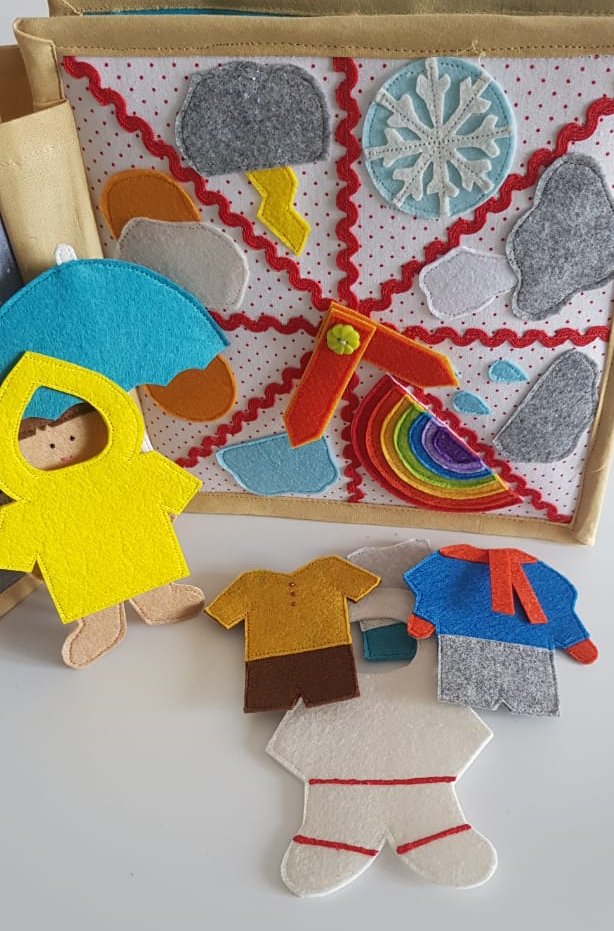 4th Page- Weather - Teach kids about the different weathers with this activity. It has 2 hands (Short and Long) to tell about the weather. It comes with a Doll Figurine to change the clothes as per the weather. (Cold, Rainy, Sunny, Partly Sunny etc.)