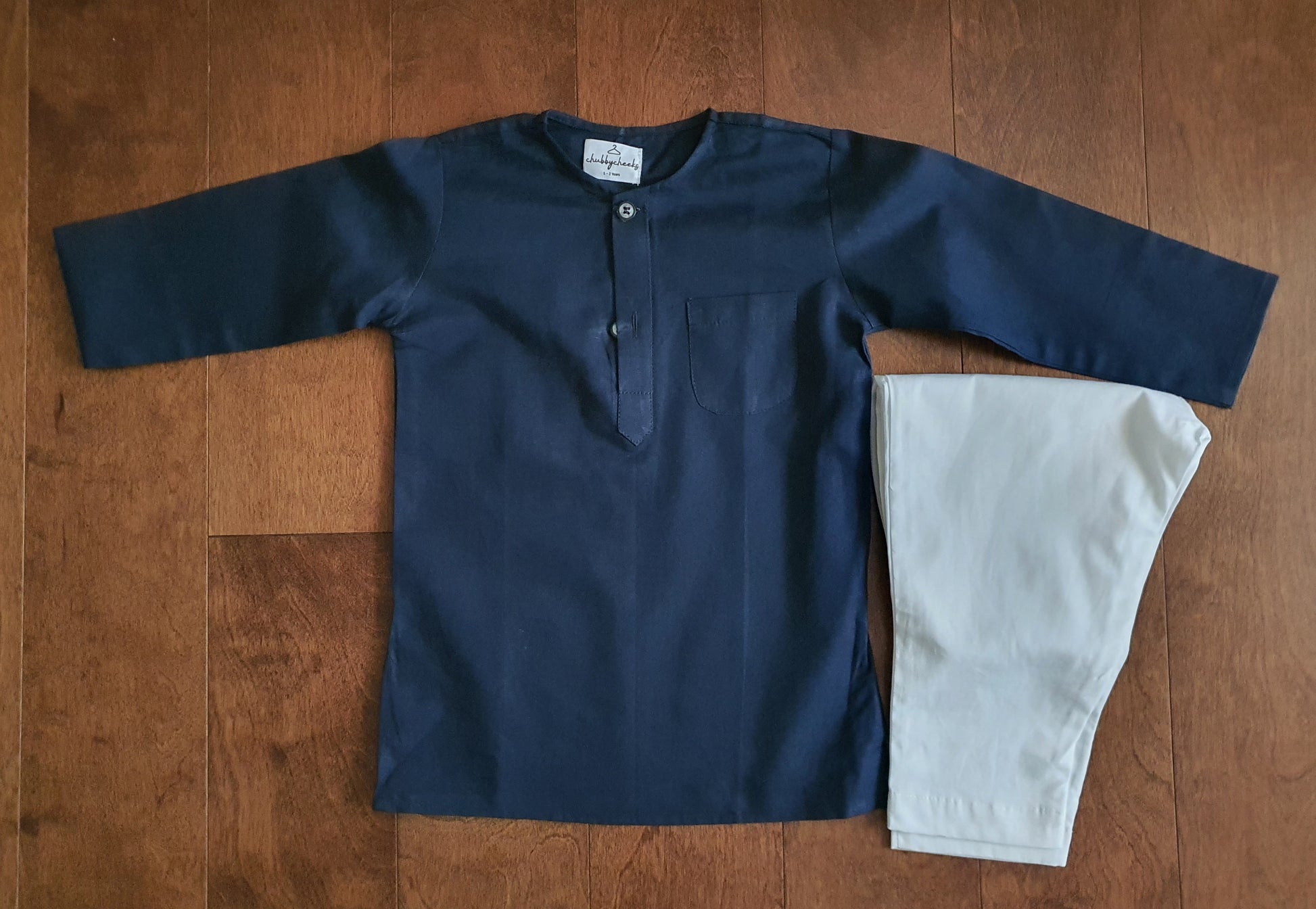 Linen Cotton Kurta-Pajama Set | Navy Blue & White