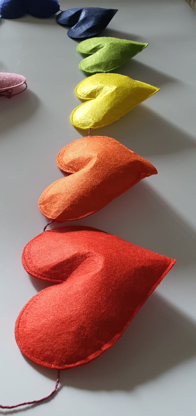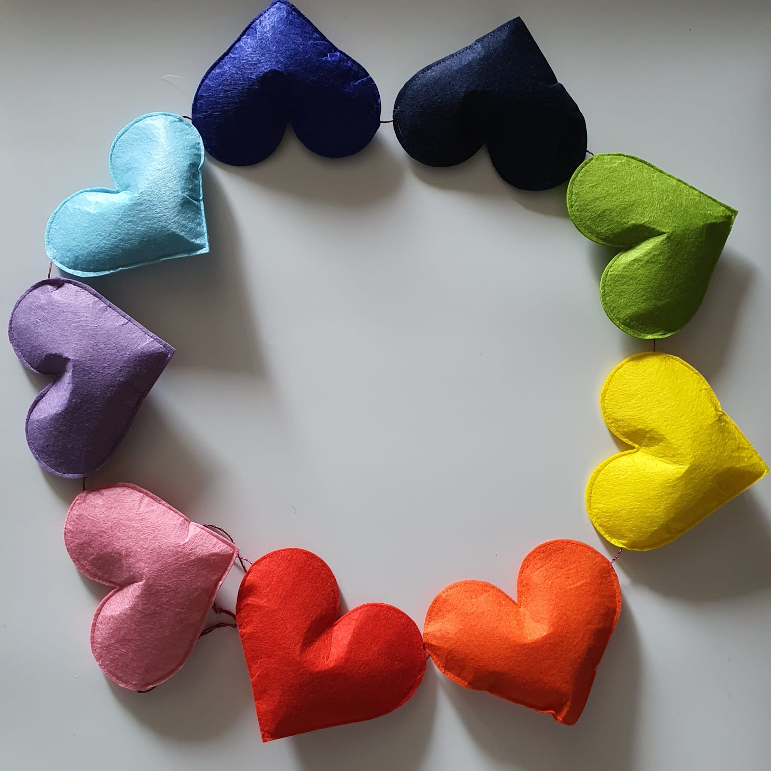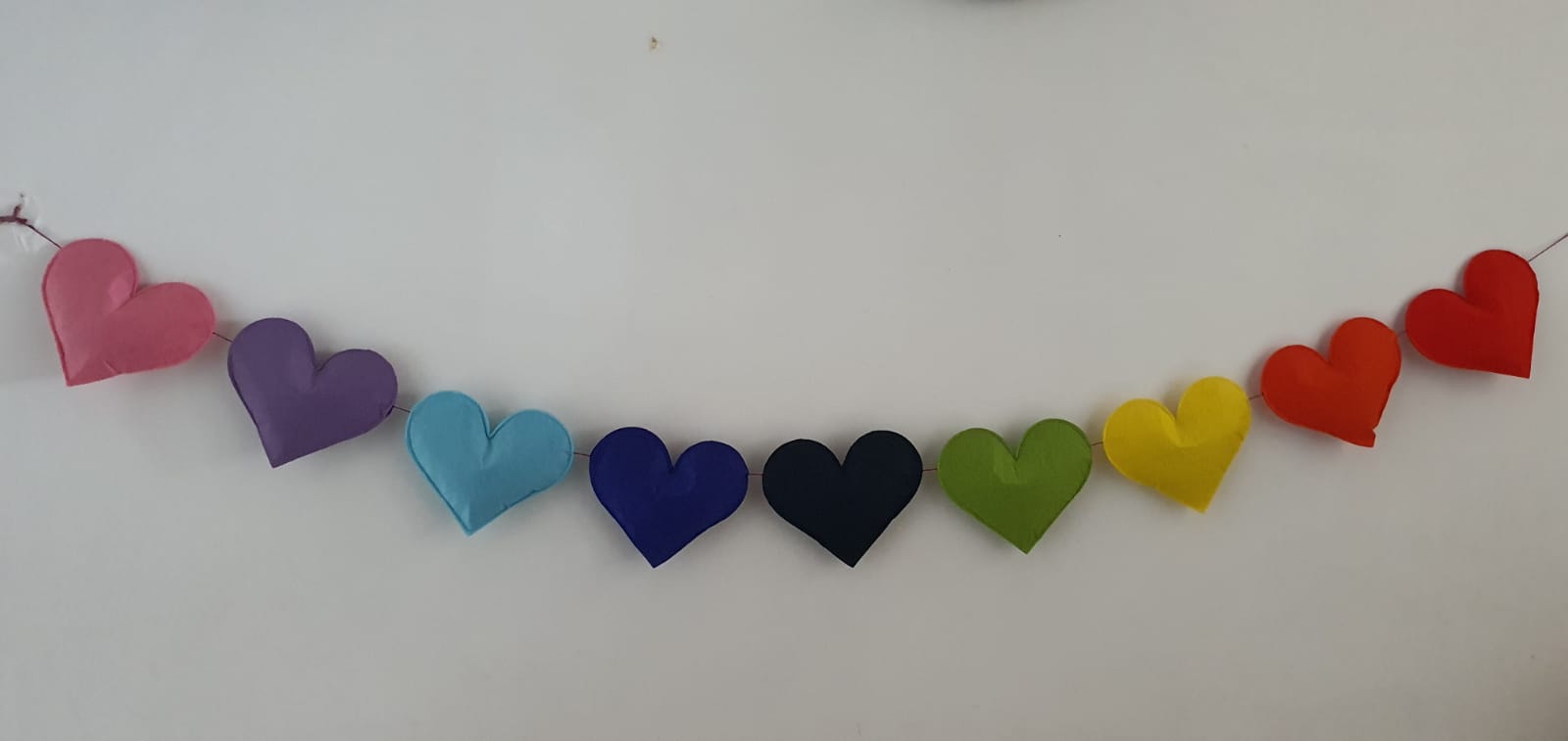 Crafted from high-quality felt and polly fill, this bunting is both durable and soft to the touch. Measuring approximately 1-1.5 meters in length, it features a total of 9 heart-shaped decorations in a beautiful rainbow of colors. Each heart measures approximately 5-6 inches, making them the perfect size to catch your child's eye and spark their imagination.