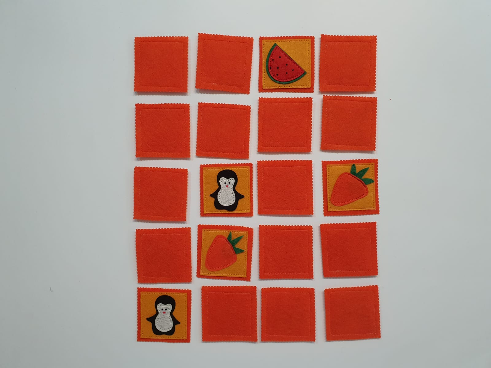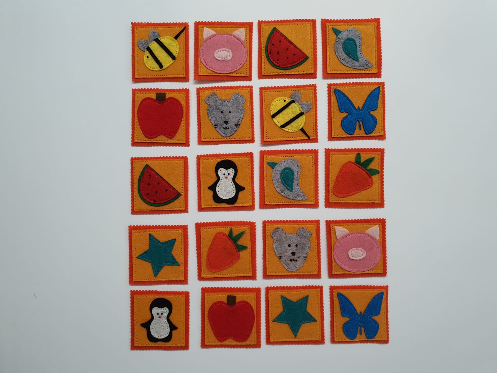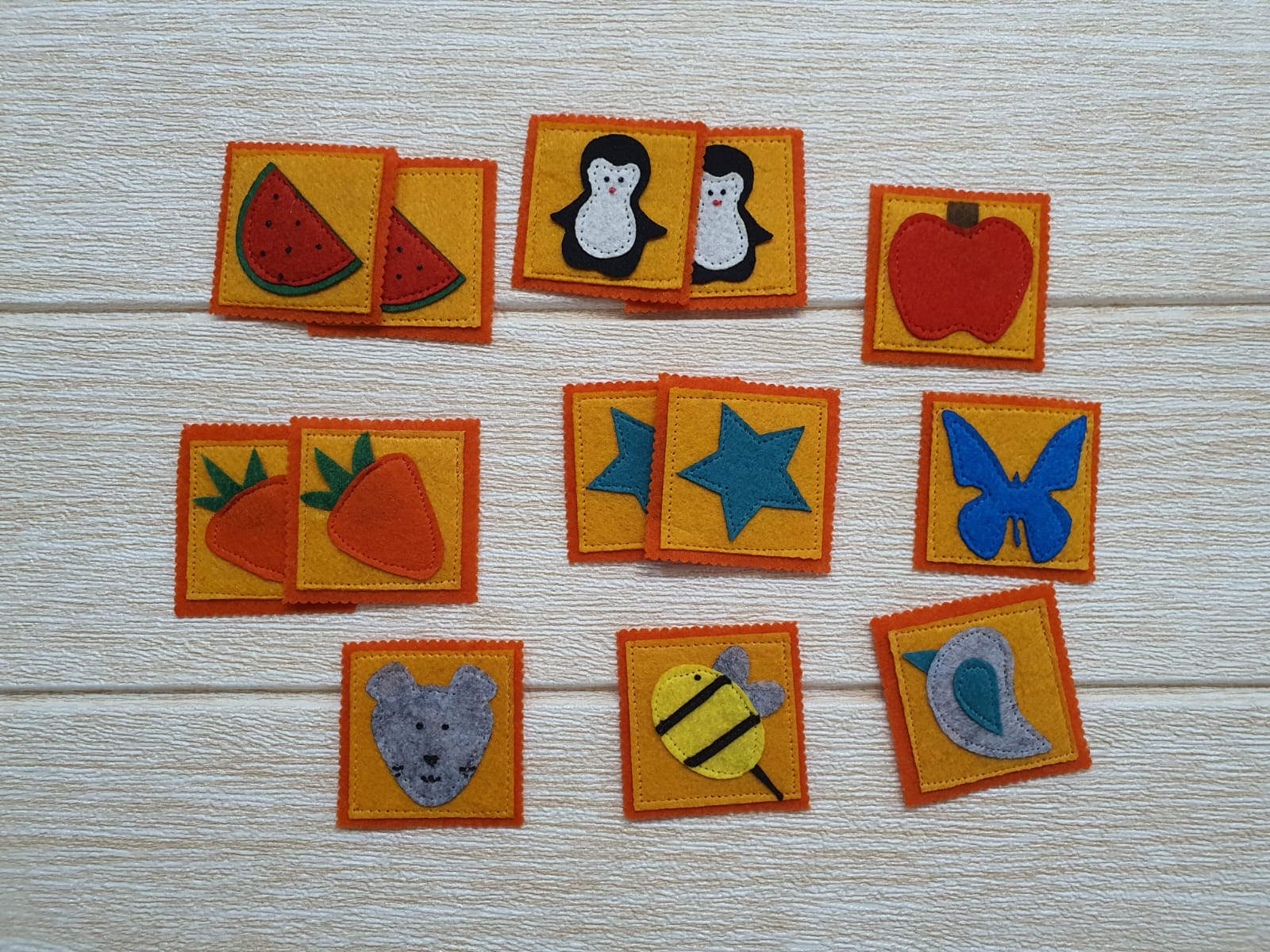 The Felt Memory Game is designed to help children improve their memory skills, concentration, and cognitive abilities. To play the game, simply shuffle the felt cards and lay them out face down on a flat surface. Children take turns flipping over two cards to try and find a matching pair. If a matching pair is found, the player keeps the cards and takes another turn. If the cards do not match, they are turned back over and play continues to the next player.