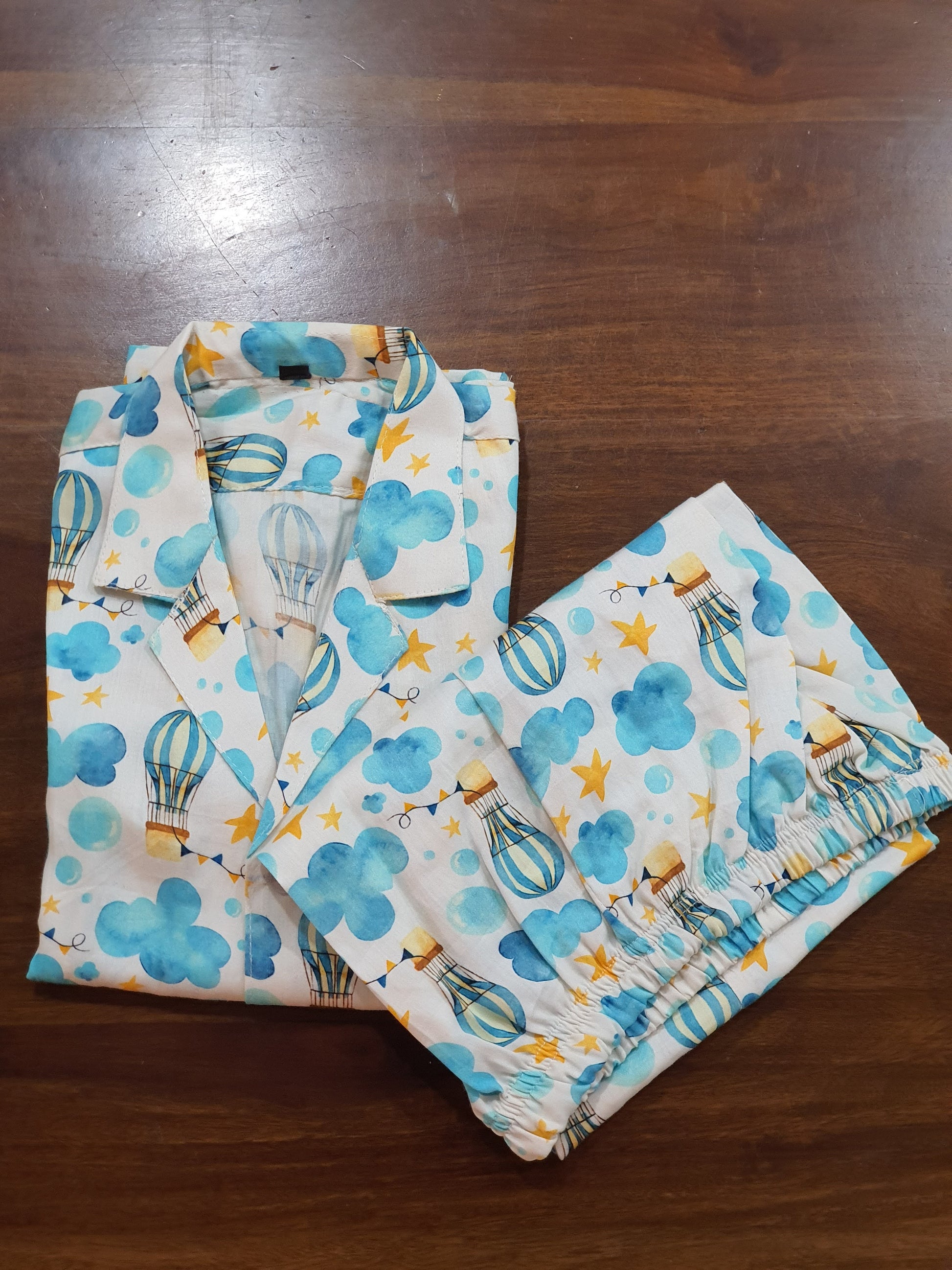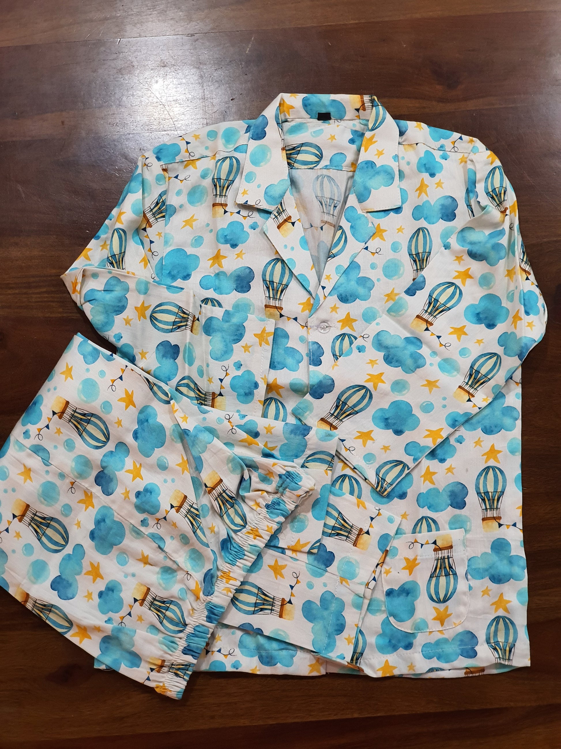 Super Soft Cotton Night Suit | Clouds & Air Balloon Print