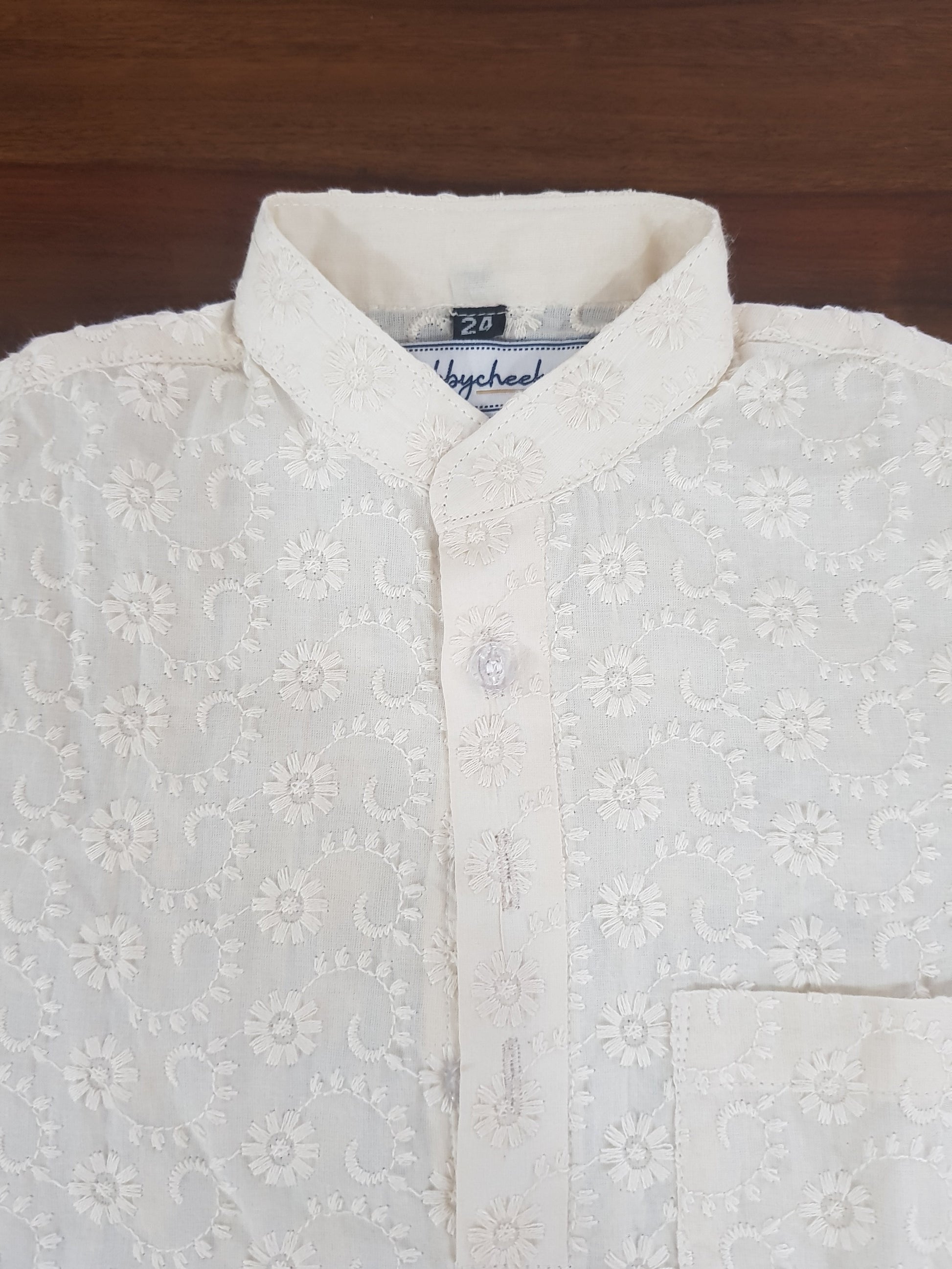 Thread Embroidery on Pure Cotton Kurta-Pajama Set | Beige