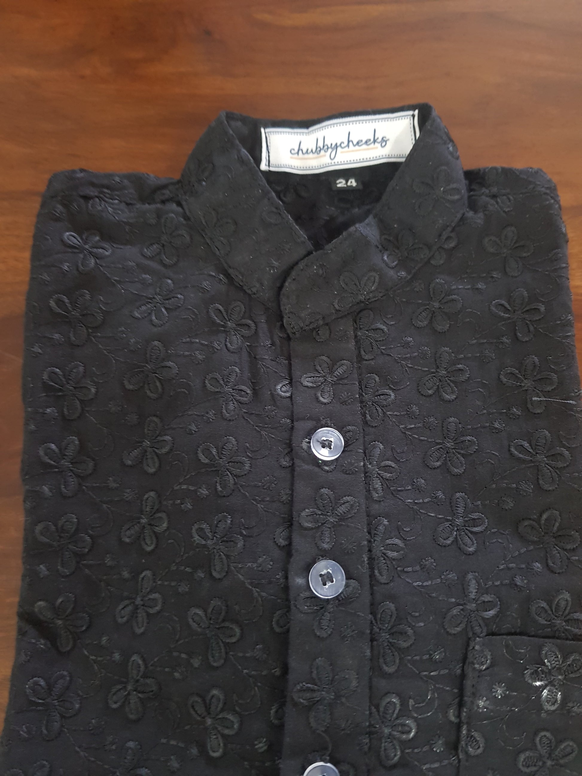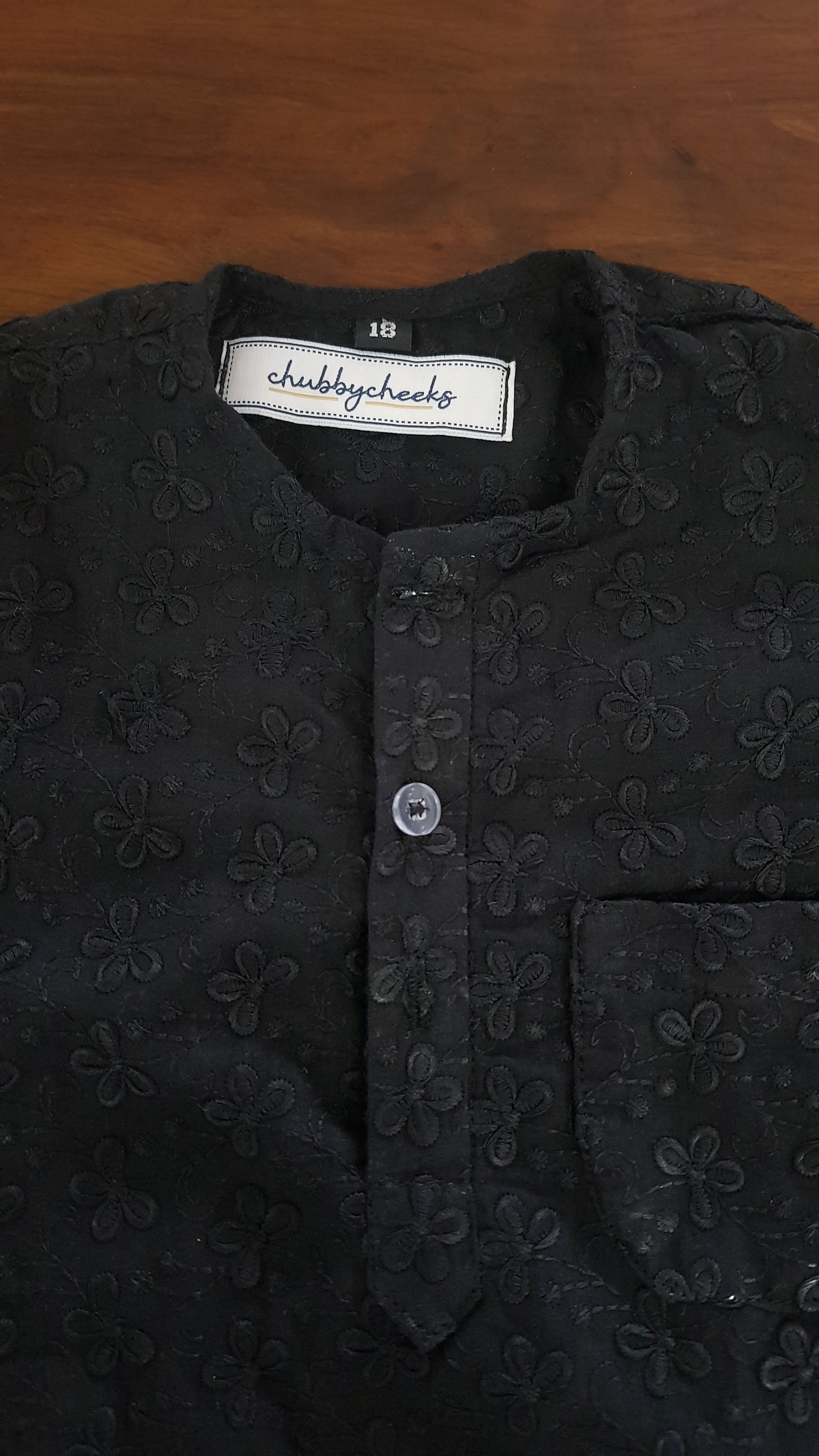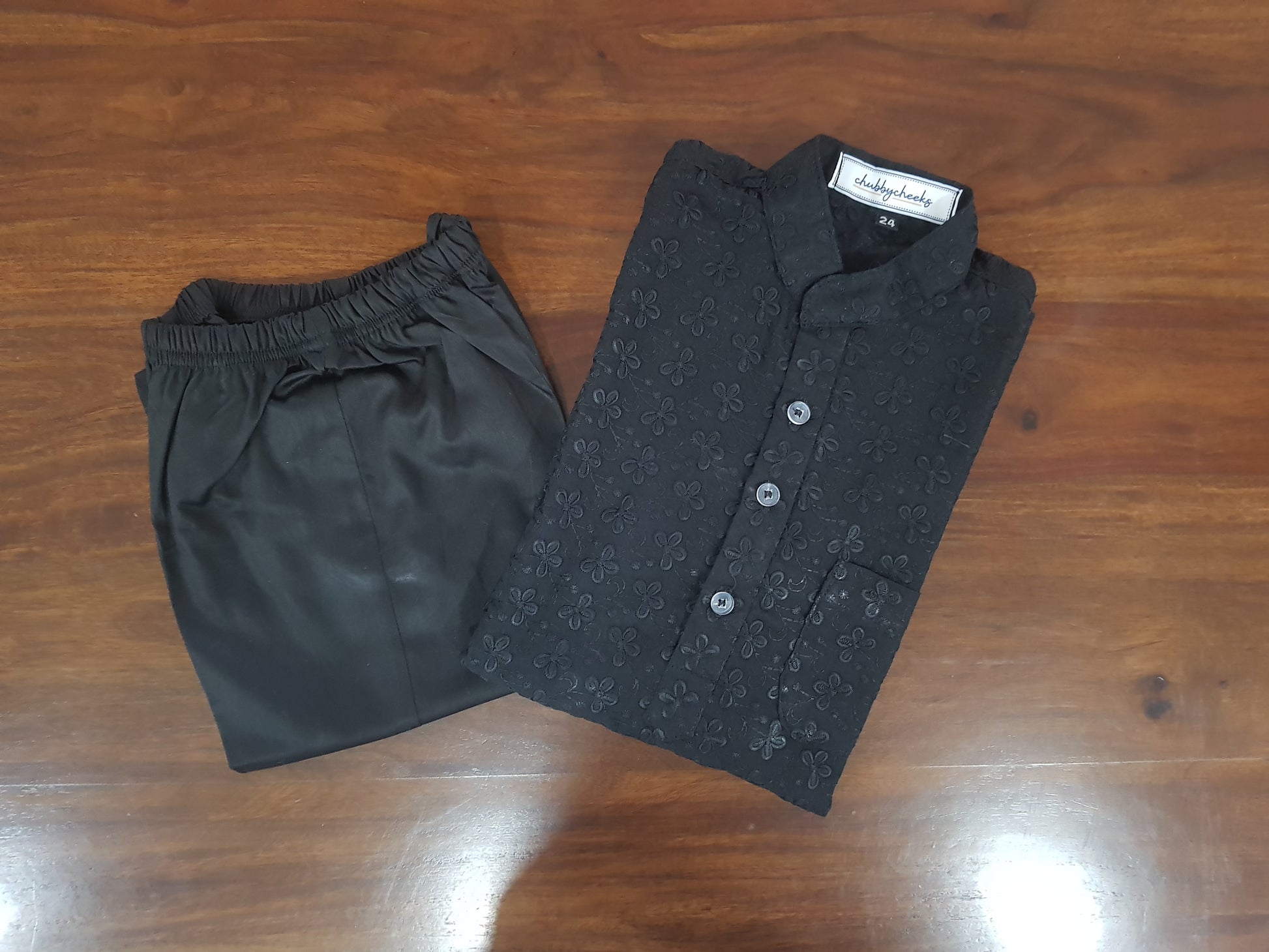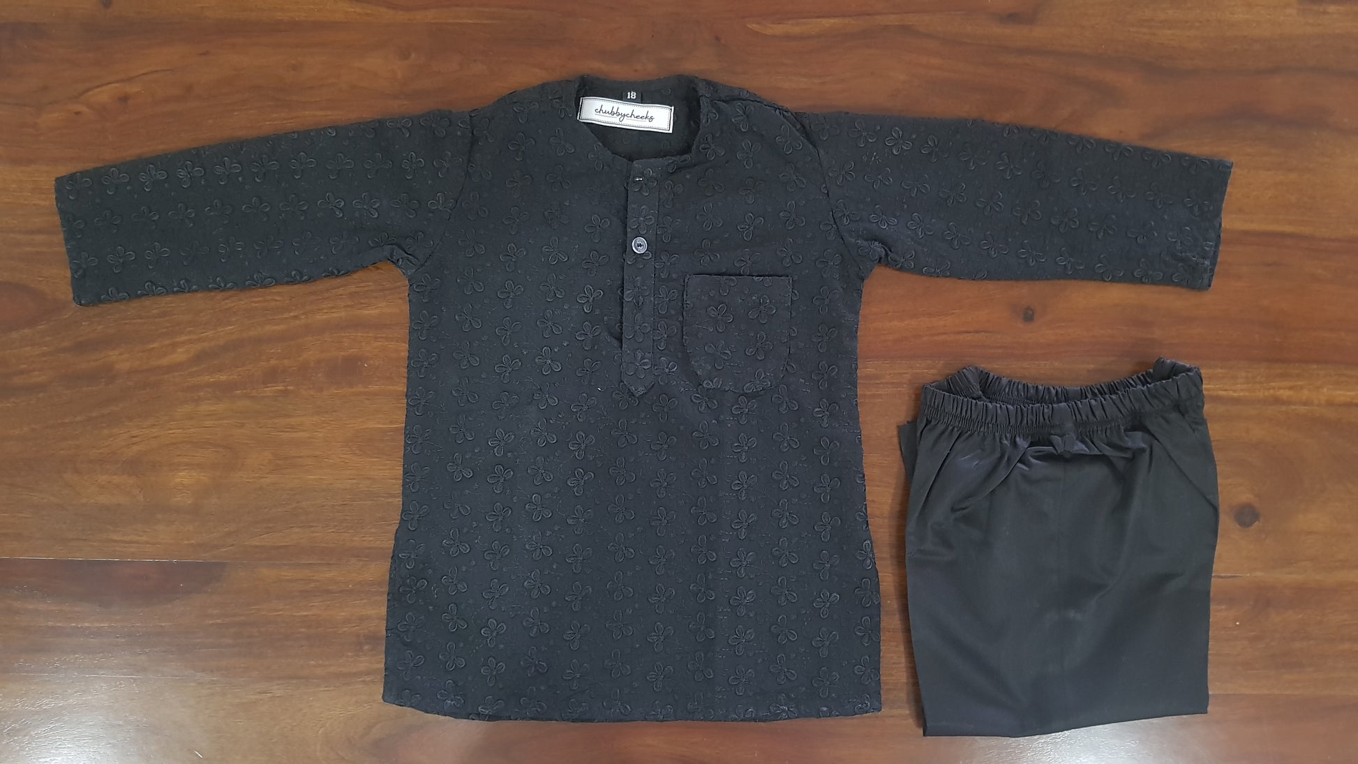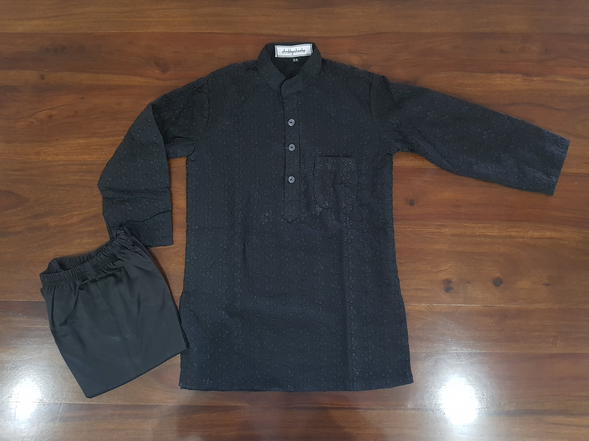 Thread Embroidery on Pure Cotton Kurta-Pajama Set | Black