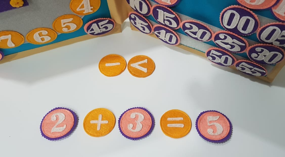 This book comes with 4 Calculation signs {Plus, Minus, Equal To and Greater Than}. using them they can do some basic calculations.
